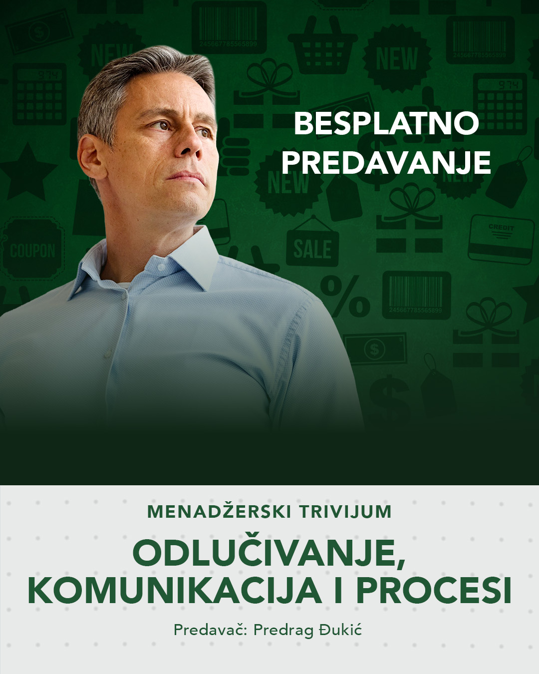 Kroz otvoren, praktičan i duhovit razgovor, Predrag Đukić, vodeći predavač za oblast Menadžmenta u Mokrogorskoj poslovnoj školi će govoriti zašto većina menadžerskih problema nije ni u ljudima, ni u tržištu – već u lošem odlučivanju, mutnoj komunikaciji i procesima koji postoje samo u PowerPointu.